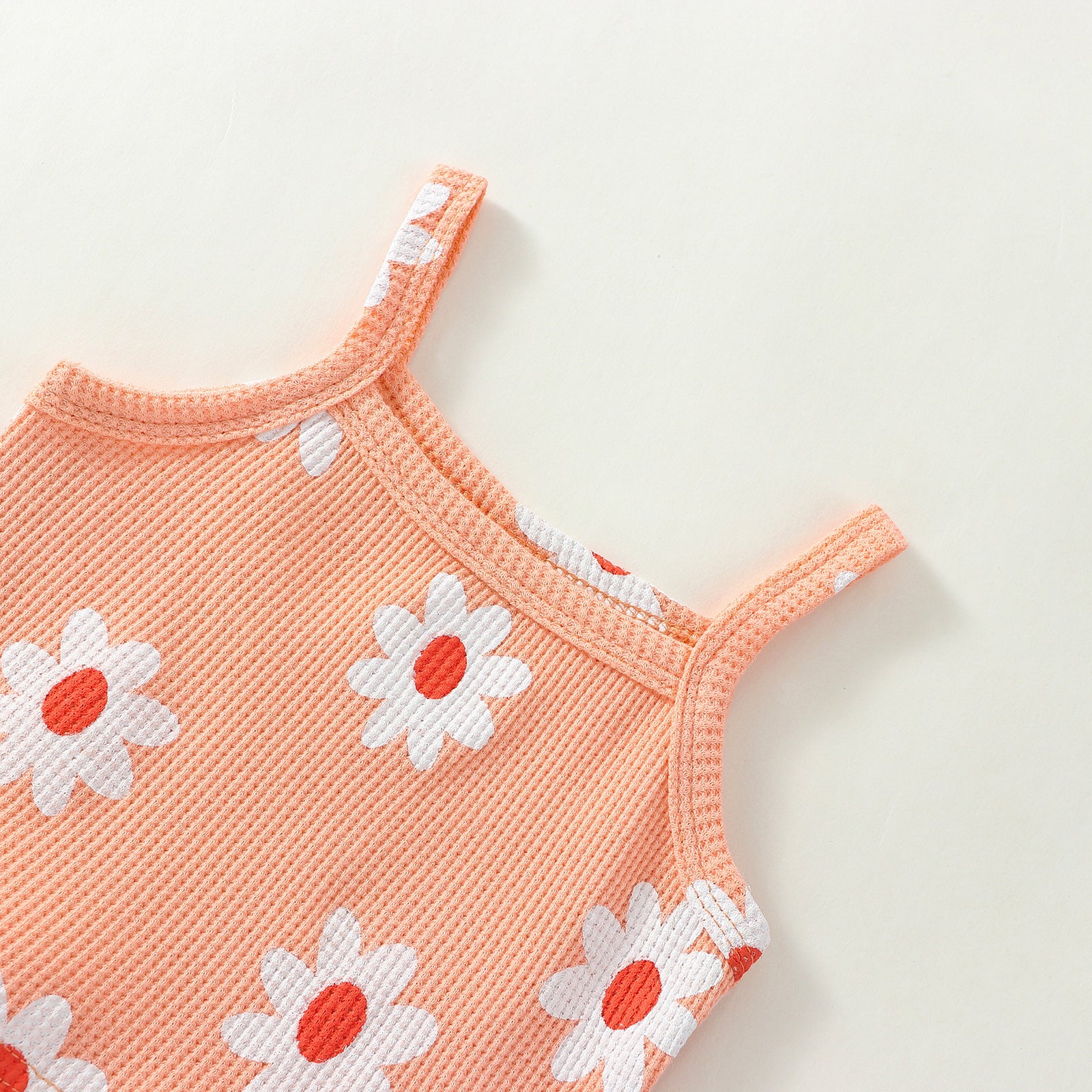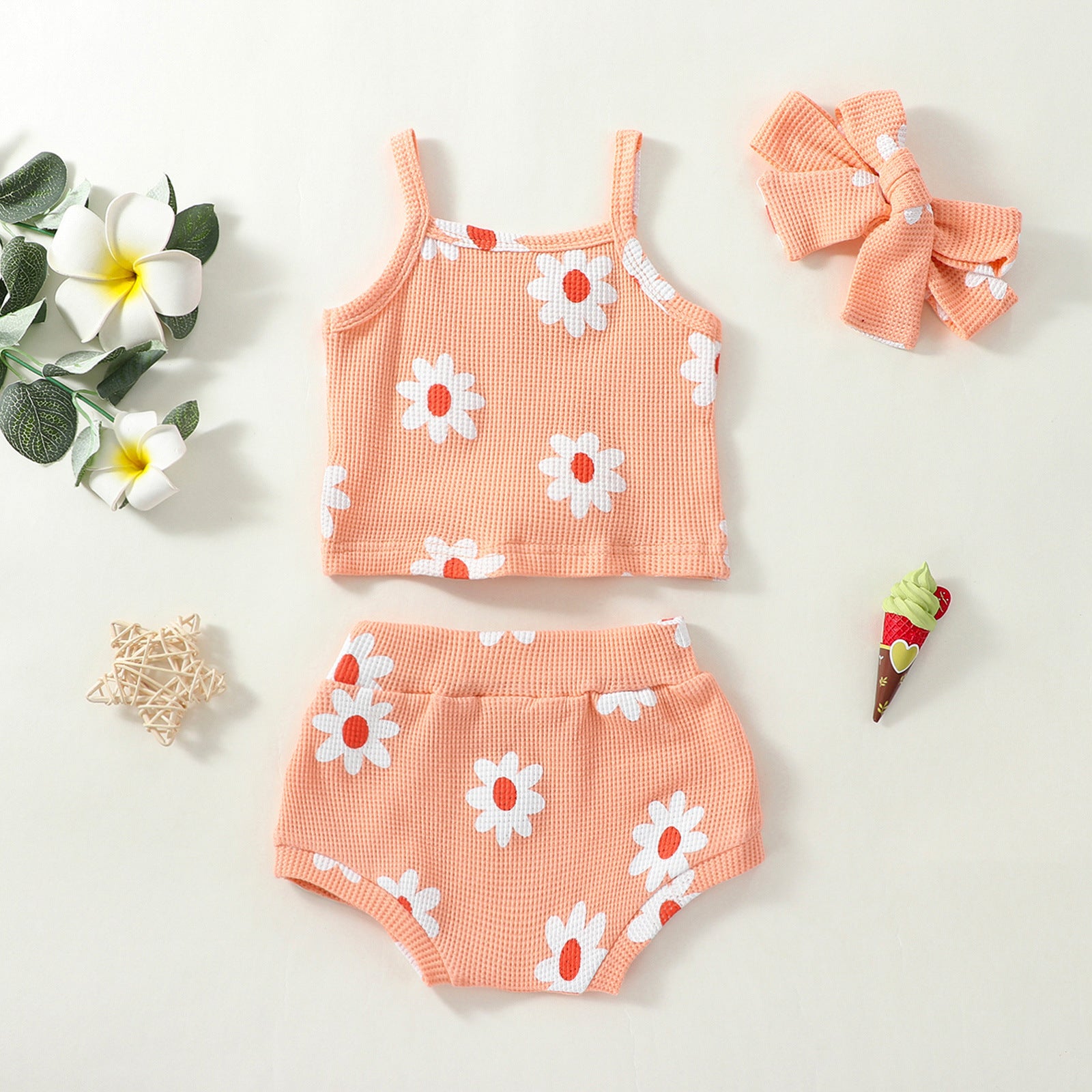 Casual Clothes Suspender Flower Top Shorts Headscarf Three-piece Set